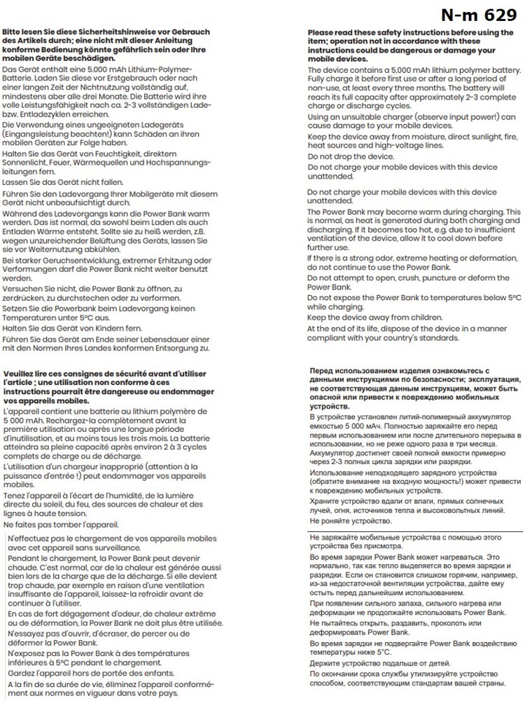 Output USB-C PD: 5V/3A, 9V/2,22A, 12V/1,67A (20W max.)