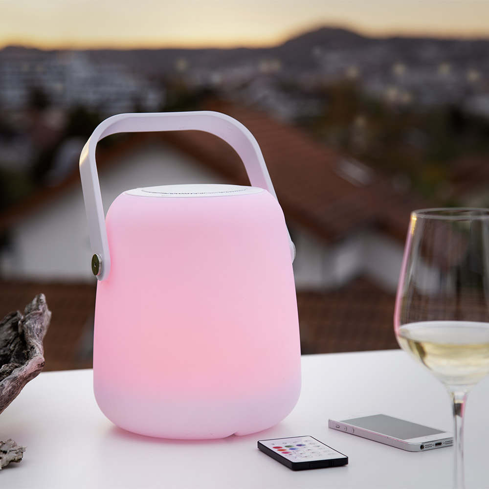 Ambient-Light und Lautsprecher in einem Produkt in elegantem, zeitlosen Design. Mit Soft-Touch Finish und hochwertigem Trage-Bügel. Satte 6 Watt Leistung für glasklaren Sound.