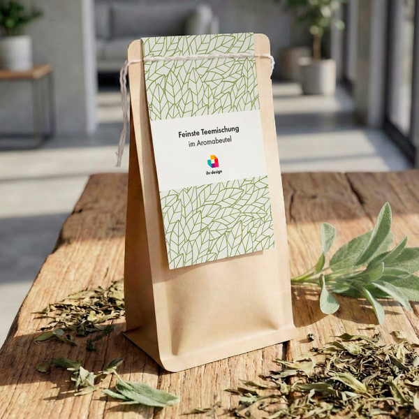 | Material: | folienbeschichteter Kraftpapierbeutel, Teemischung |