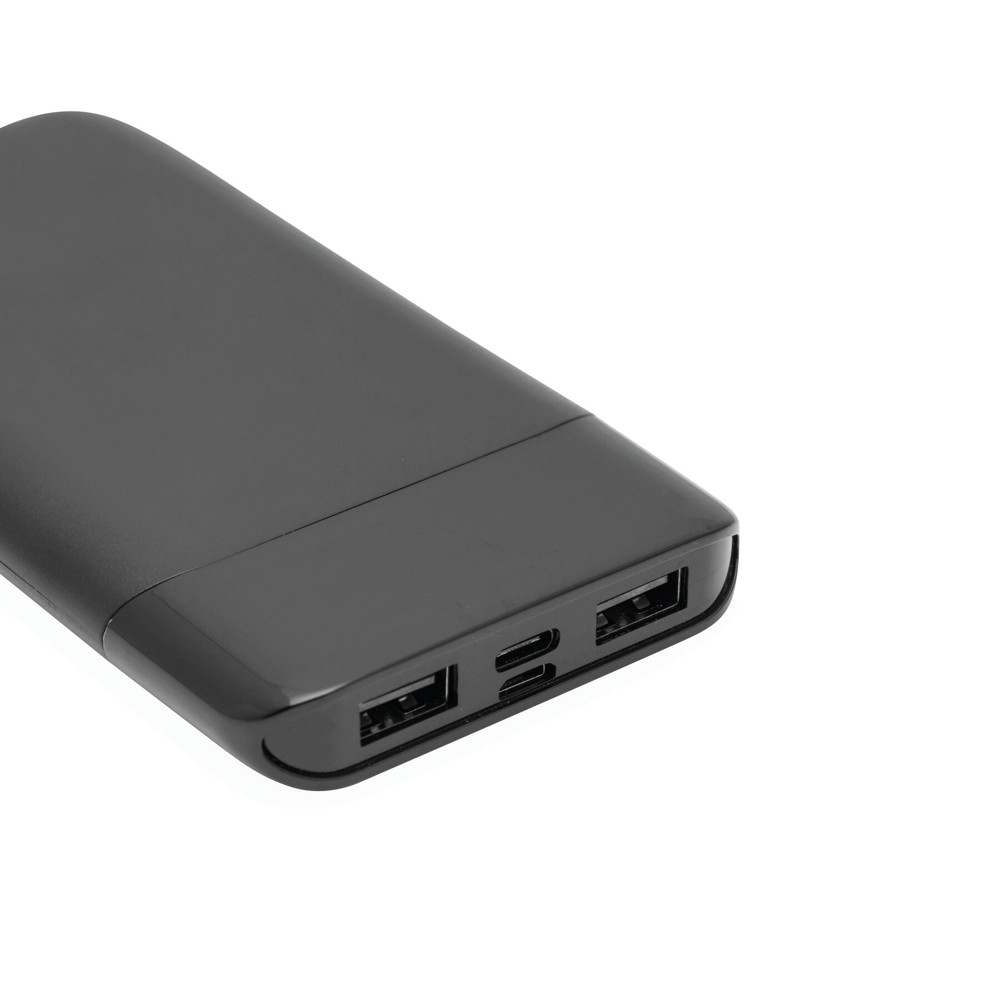 Powerbank BIG CAP: geeignet für Smartphones und USB-betriebene Geräte, inkl. USB-Ladekabel mit Micro-USB Stecker (Länge: ca. 30 cm), mit Ladestandanzeige in Prozent, Ein- und Ausschalter, je 1 USB Typ C und Micro-USB Eingang und 2 USB Typ A Ausgänge, Eingangsleistung: 5V/2A, Ausgangsleistung: 5V/2A, Kapazität: 8.000 mAh, leistungsstarker Lithium-Akku, in Box